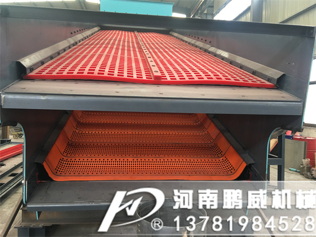 弛張篩是雙質量振動系統,采用聚氨酚橡膠篩面,支承篩面的任意兩根相鄰橫梁都分別屬于兩個振動質體,其中一個質體是篩箱,另一個質體是配重。在工作時,篩網交替地拉緊和松弛,使物料產生前進彈跳運動,可避免物料黏附篩網并堵塞篩孔。當兩質體相差二相位振動時,任意兩根相鄰橫梁時而靠近,時而遠離,彈性篩面也相應時而松弛,時而張緊,即篩面隨篩箱作牽連運動的同時,還相對篩箱作相對運動。這種弛張運動不僅使篩孔不斷產生變形,而且大大增加了篩面的振動強度,從而有效地克服了篩孔堵塞現象,顯著提高了篩機處理能力。但是因篩箱的振動強度并不大,故機械強度容易保證,但篩面的振動強度較大且反復變形,故篩面壽命較低。