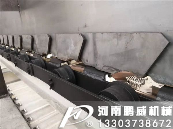 耐高溫鱗板輸送機新設計三:鱗板機在運行輸送過程中可對物料完成冷卻、清洗工藝